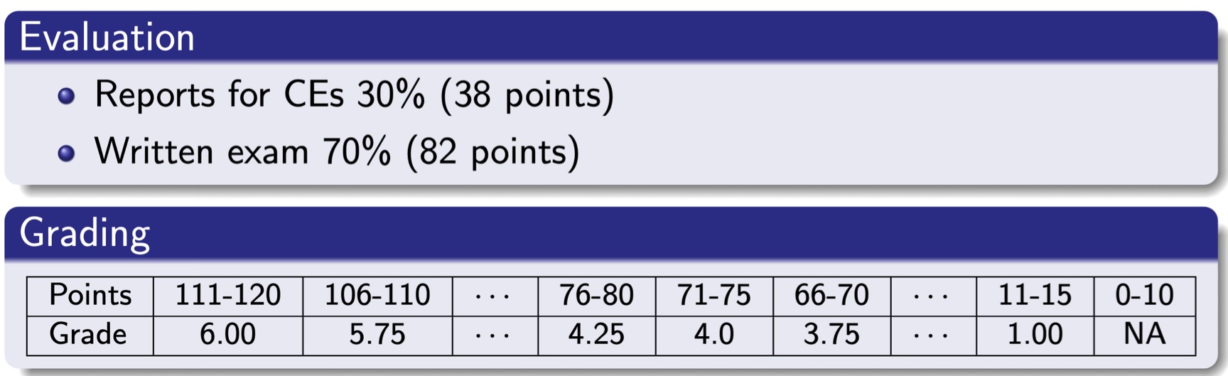 - Students are allowed to bring one cheat sheet (A4, both sides). No other documents are allowed.