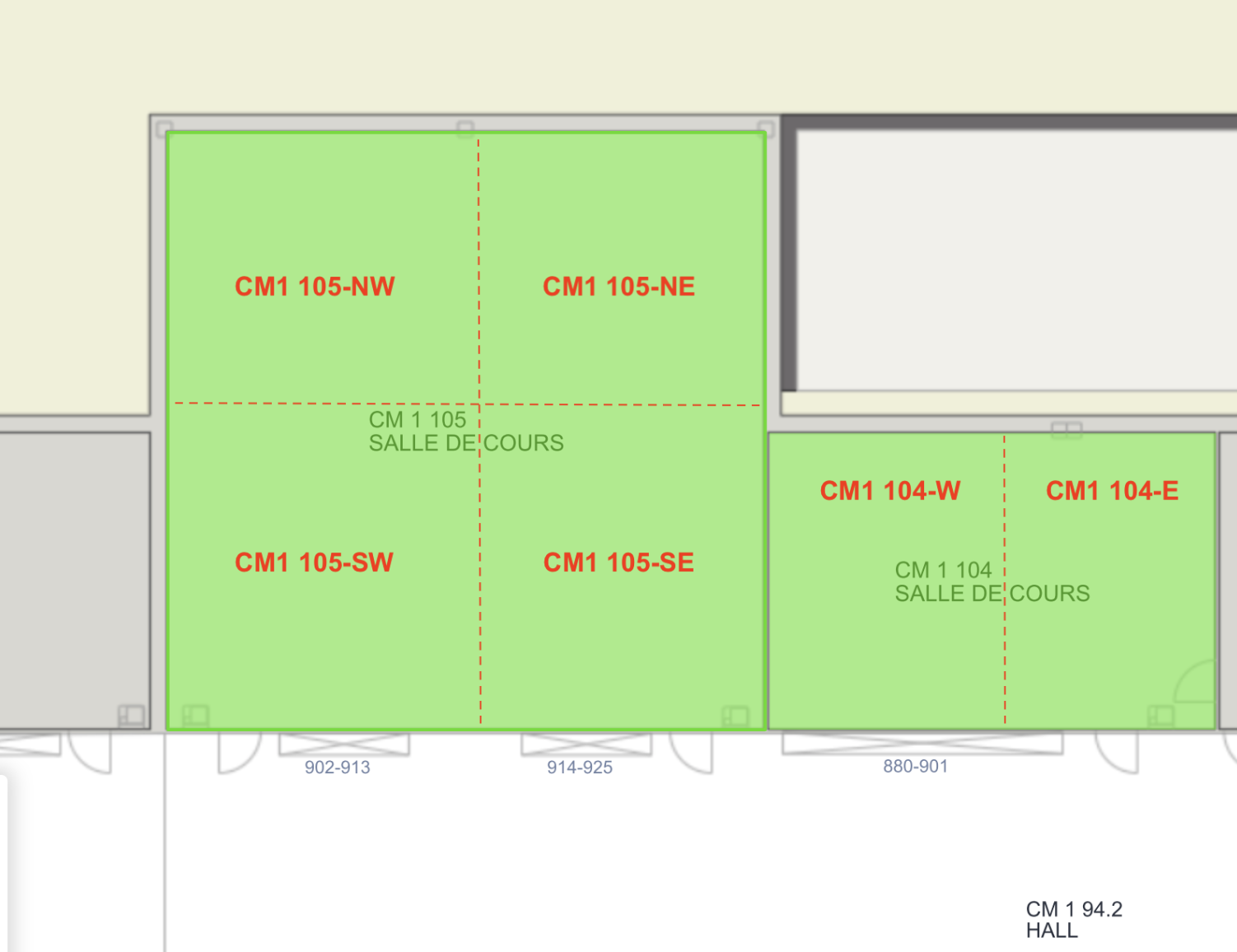 PLAN DES SALLES CM1104 et CM105 POUR SEANCE DE SUIVI