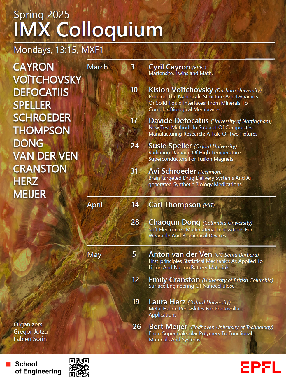 (1) If you are an EDMX graduate student, you require at least ten signatures for your candidacy requirement. To get these signatures you must attend at least 10 seminars, either in person (preferred) or virtually (if your PhD project is not based in Lausanne, or individually in exceptional cases).